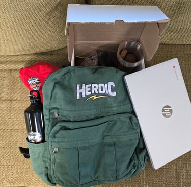 Each participating and funded student will receive a Heroic backpack with the Heroic Laptop, Heroic Journal and the Heroic Farms Game’n Grow system for the home. The laptop will be one of the Heroic Chromebook devices and will become the student’s after 3 years if they hit their learning goals each year. Students will view that laptop as their own property from the start and take care of it accordingly.