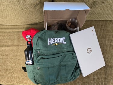 For every student that is funded, they will receive the Heroic Backpack, which includes a laptop, home game'n grow system, and other swag items. They will also be eligible to convert their Heroic tokens in the game into real Heroyk tokens that represent ownership in the Heroic company.